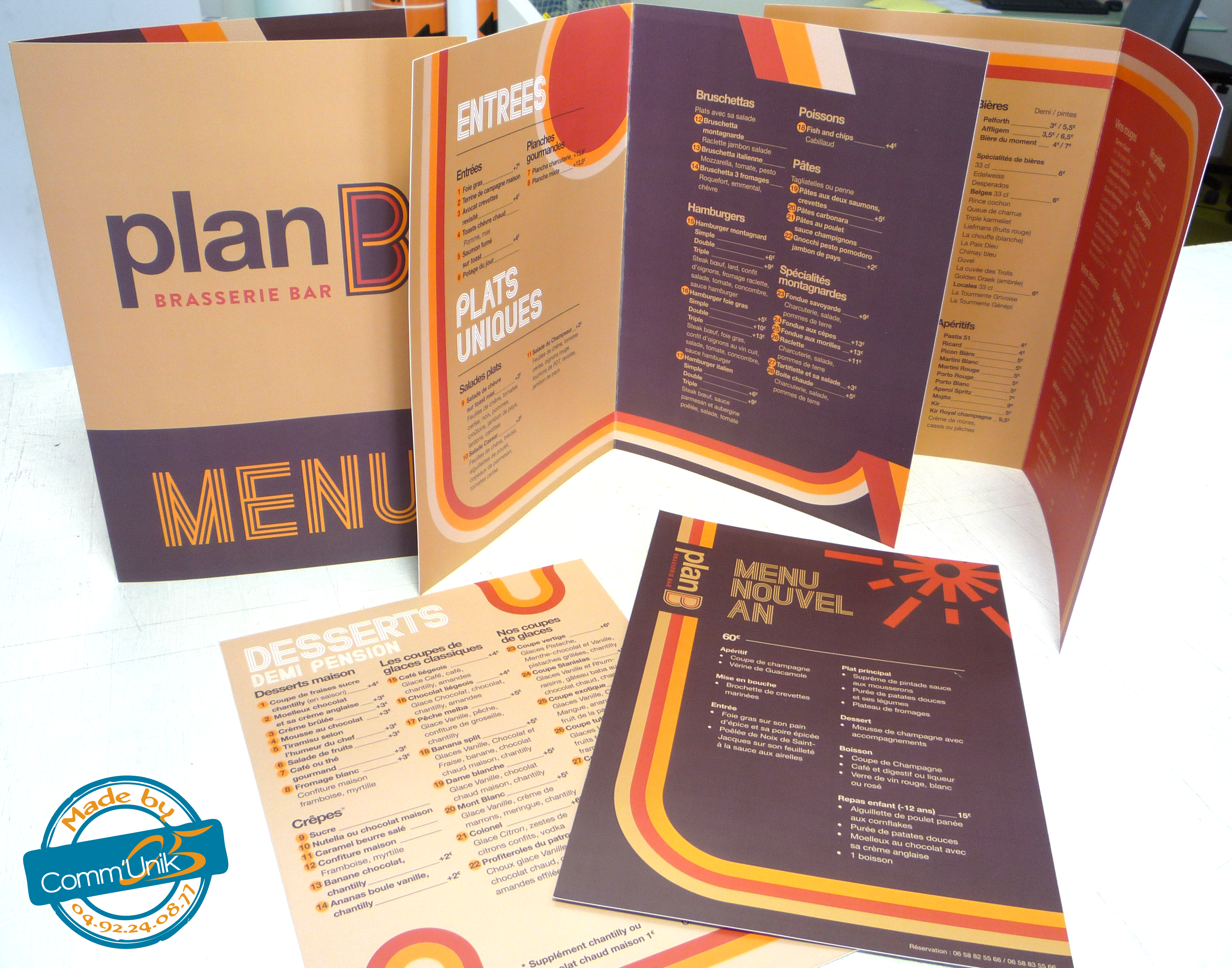 - impression papier de qualité (menus, cartes de visite, affiches, flyers,dépliants, brochures)